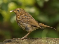 The Robin has successfully raised young this year, i have only seen one but i am sure there are a few more, they appear quickly just to take food from tree stump then retreat to a shrub.